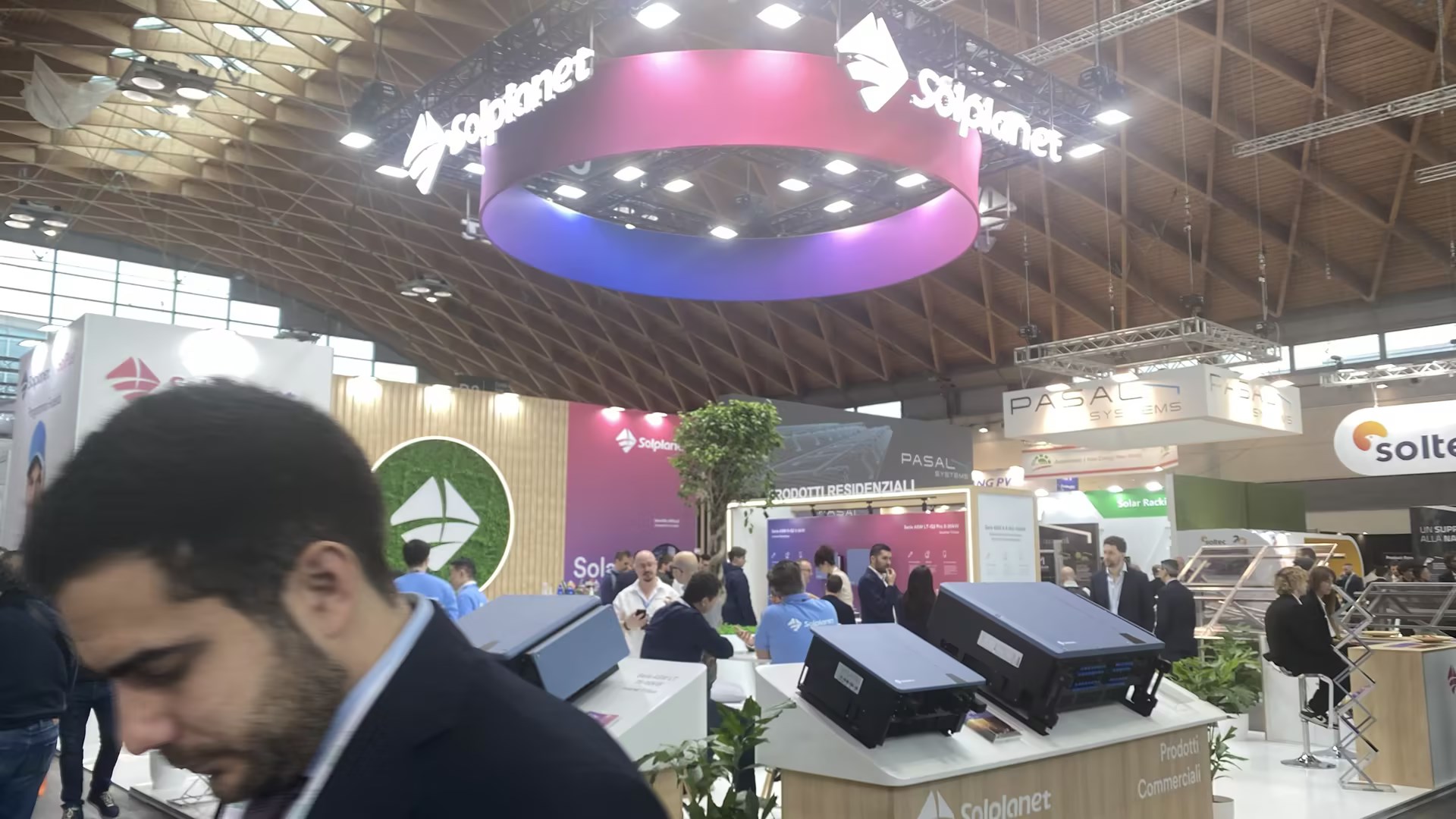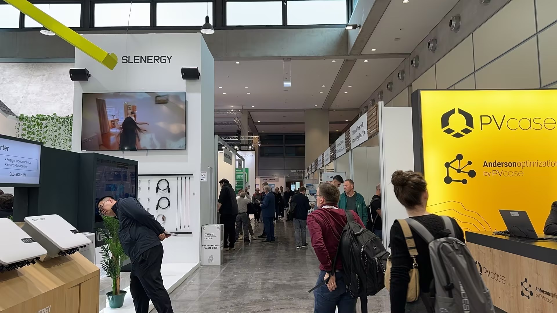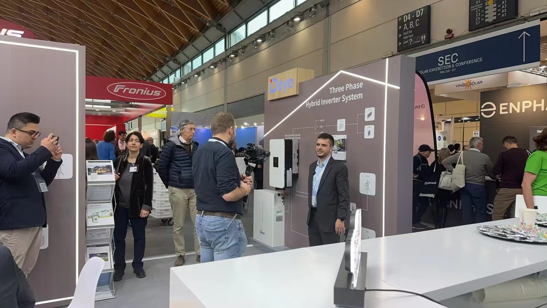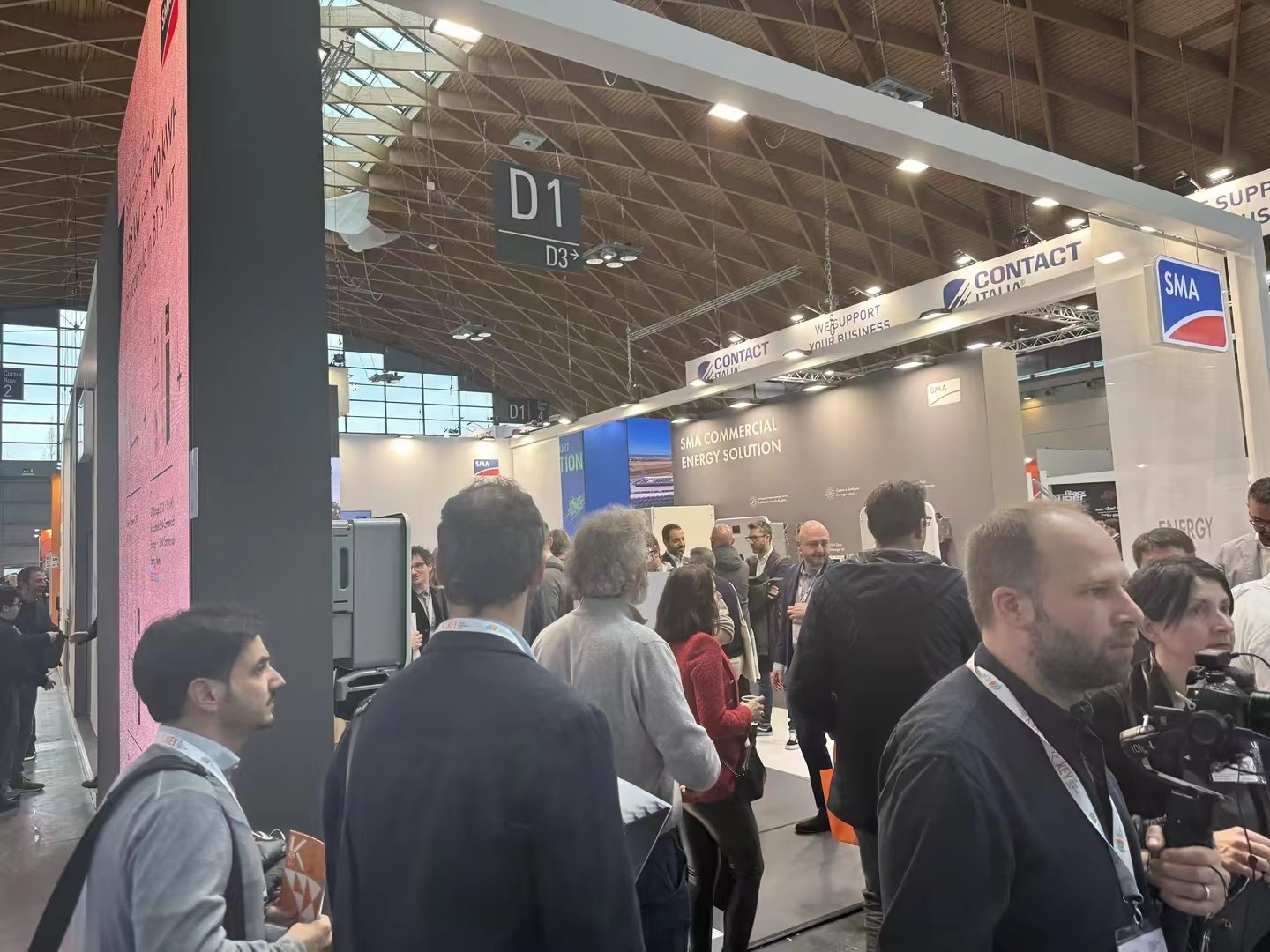 展馆现场D1-D7为光伏板逆变器储能电池专业馆,欧洲光伏协会组织欧洲各大光伏巨头悉数出场,展会现场还组织了各种活动,吸引欧洲客商参与互动。通威,正泰,固德威,古瑞瓦特,美的,海尔,德业,隆基,晶科,麦田,艾罗,三晶,纳通,大恒,欣旺达,中清,中润,力高,科士达,阿特斯,英威腾,LG,西门子,ABB,海泰,贝盛,英利,汉伏,金刚光伏,等知名中国企业也纷纷登台亮相!