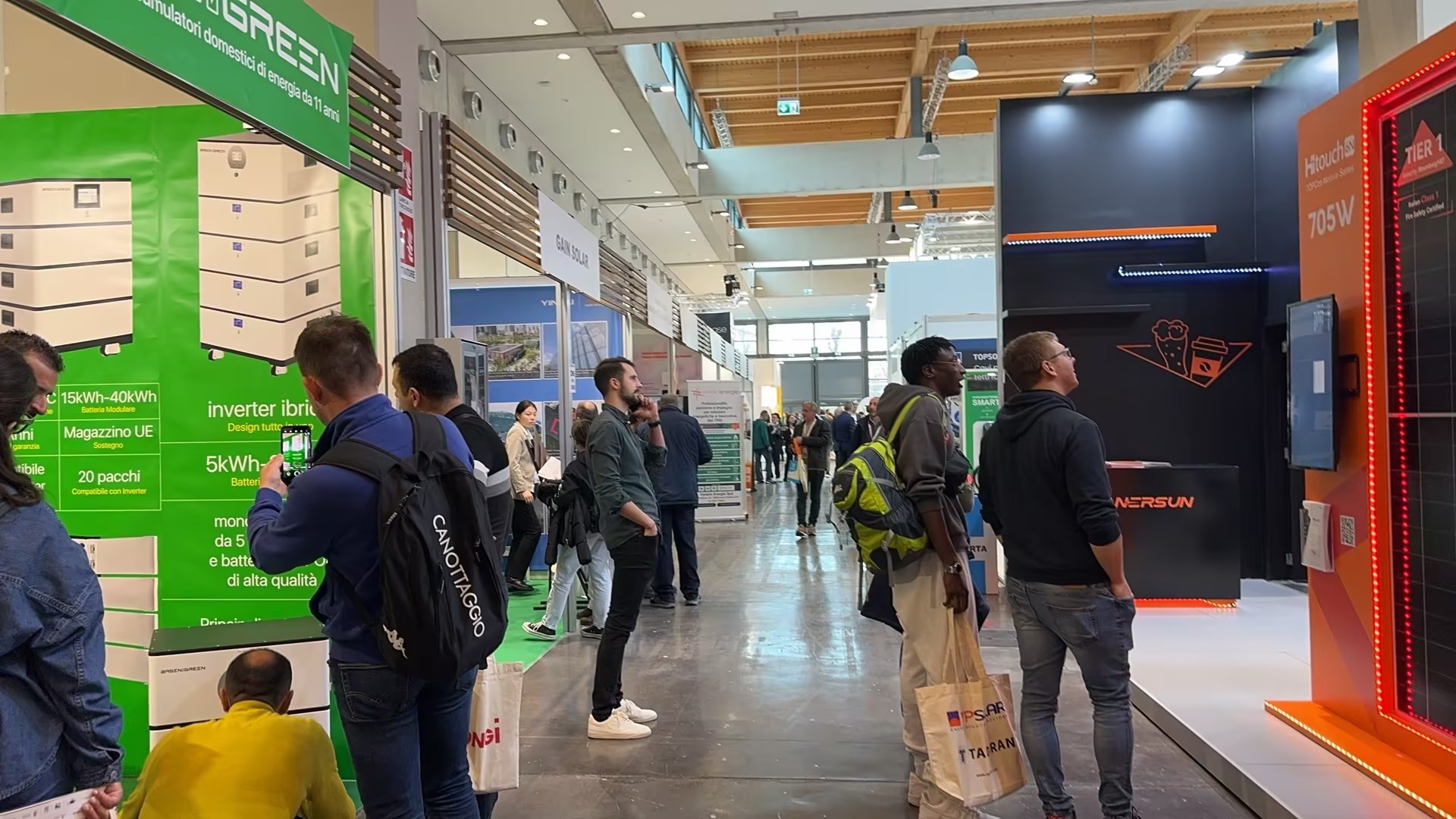 为了让更多的欧洲采购商以及新能源行业从业者来现场参观,主办方在博洛尼亚机场设立了可以直达展馆的免费巴士,火车也临时增加了展览馆的停靠站,同时还在德国、法国、西班牙、荷兰、比利时、波兰、希腊、匈牙利、挪威、芬兰、土耳其等国家组团,邀请相关行业人士去参观,并且免费提供机票酒店等。得益于主办方周密的安排和贴心的服务,展会开幕当天上午10:00人流量“爆棚”