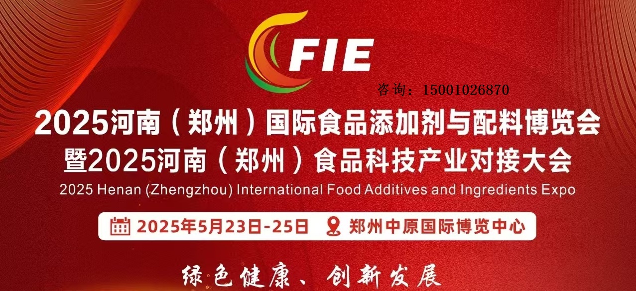 2025河南(郑州)食品添加剂与配料博览会(简称:FIE郑州食品添加剂展)。于2025年5月23-25日在河南郑州中原国际博览中心举办。展会涵盖食品添加剂、食品工业用加工助剂、复配食品添加剂、食品配料、新食品原料、食品设备、仪器和材料、食品添加剂和配料生产应用技术等,覆盖食品添加剂和配料行业全产业链,“一站式”采购贸易平台。
