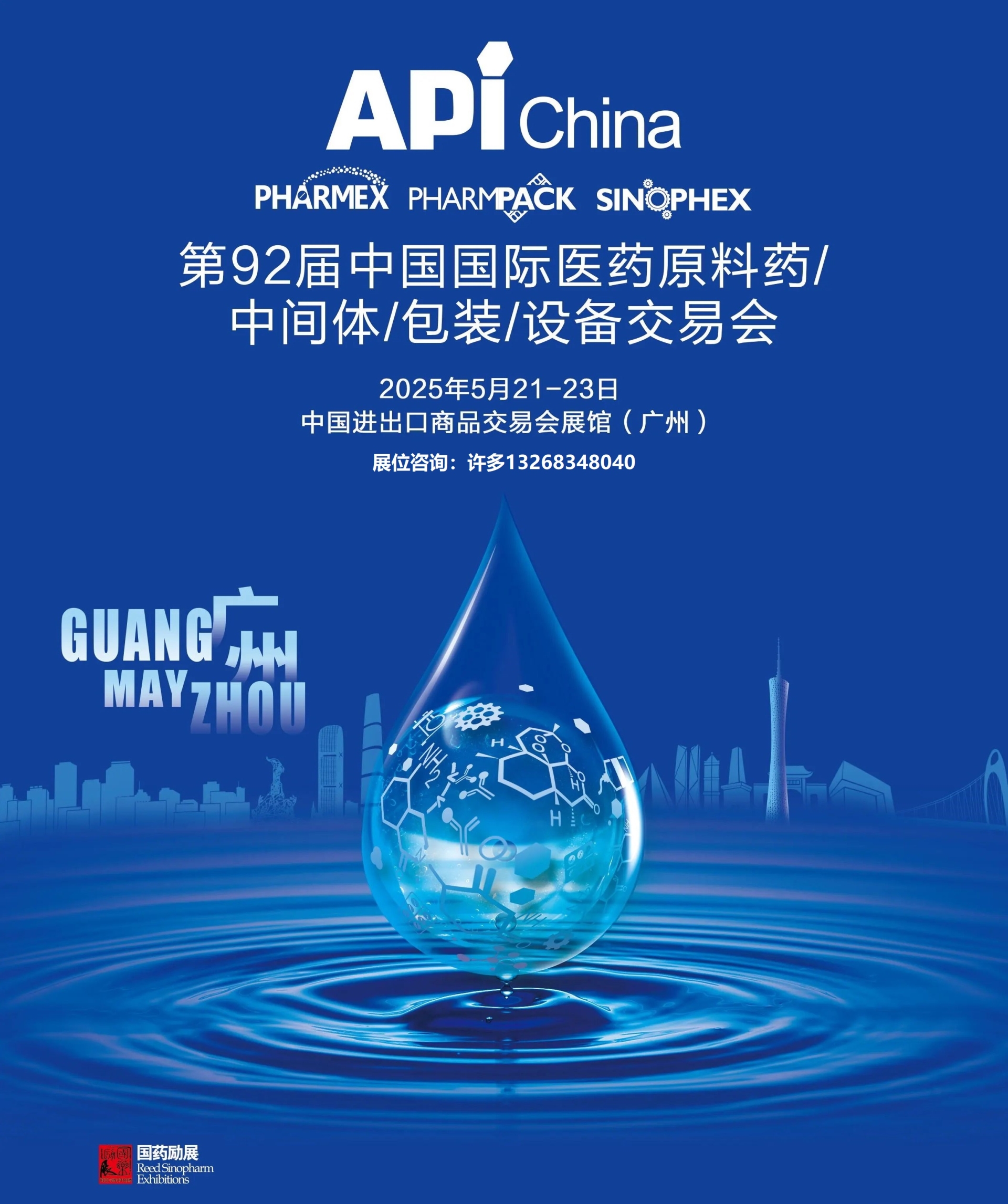 第92届中国(广州)国际医药原料药/中间体/包装/设备交易会 (API China) 将于2025年5月21-23日在广交会琶洲展馆B区召开,同期兄弟展药品交易会,健康营养展在琶洲A区召开,参展咨询电话,132 6834 8040许经理