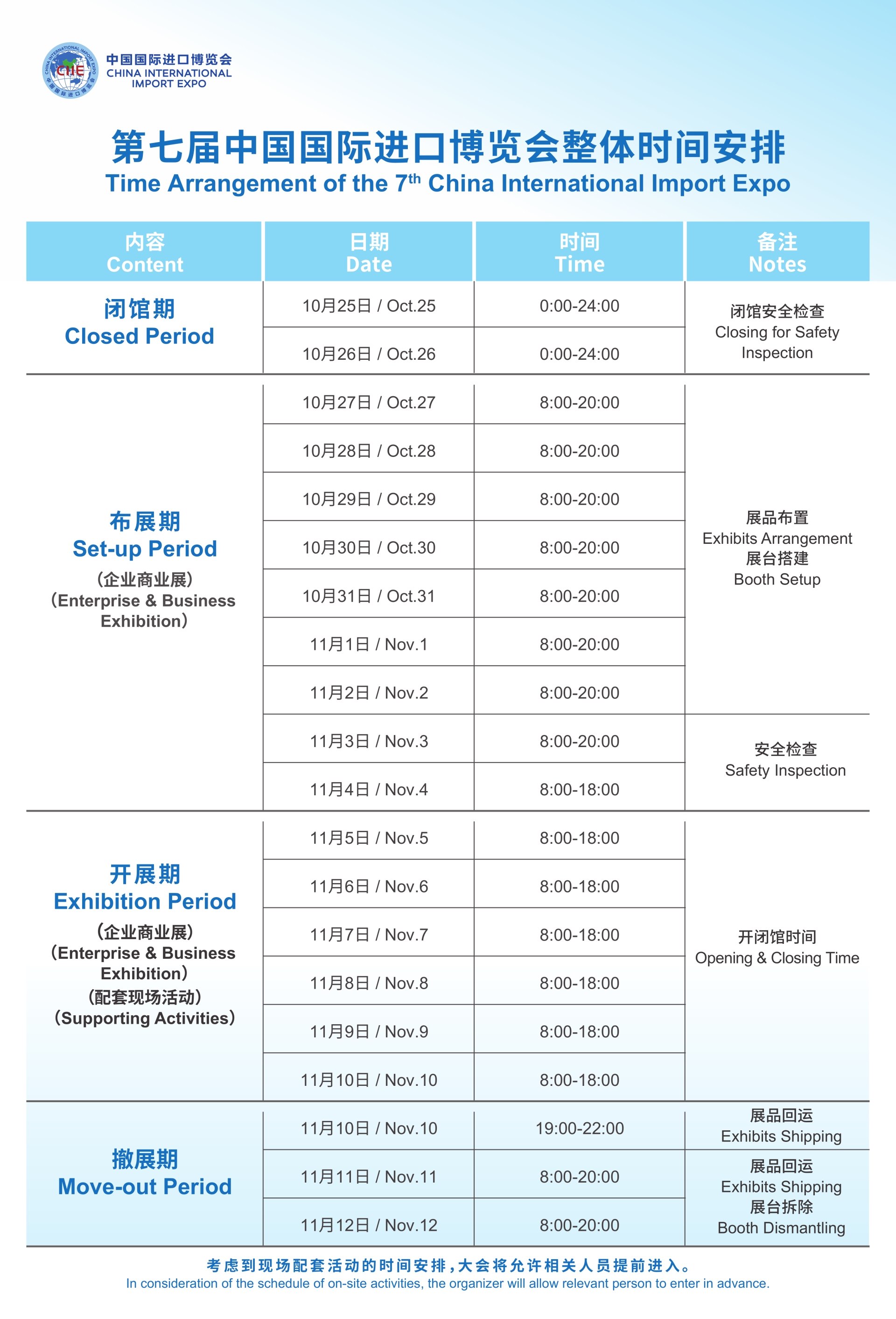 第七届中国国际进口博览会整体时间安排