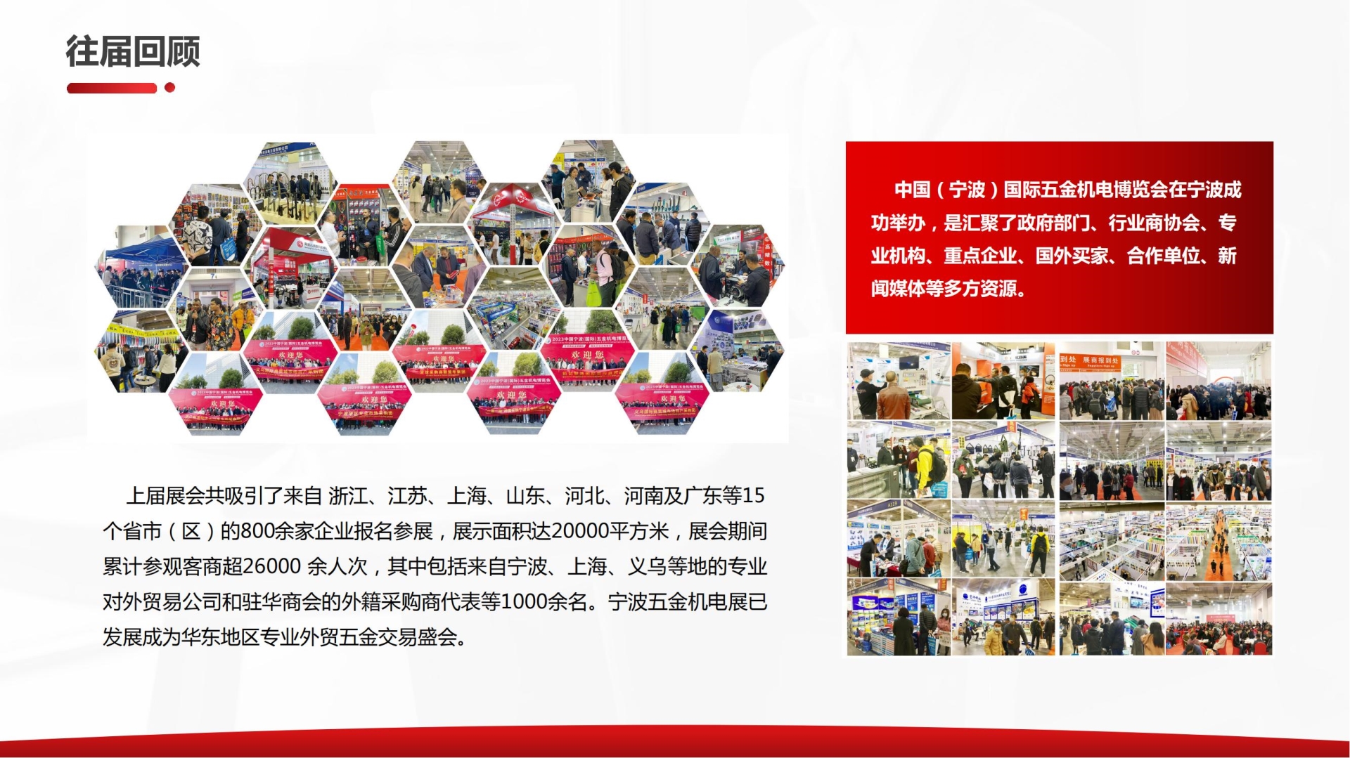 宁波,副省级市、计划单列市,作为“一带一路”国家战略的节点城市,上年度宁波外贸进出口总额达1.27万亿元,同比增长6.3%。其中,对欧盟、美国和东盟进出口额分别为2292.1亿元、2162.5亿元和1494.8亿元,同比分别增长7.8%、3.8%和19.6%,三者合计占同期全市外贸总额的47%。 去年宁波对“一带一路”沿线国家进出口额3856.1亿元,同比增长16.7%,而五金机电产品为主要出口商品,出口额4601.9亿元,占全市出口总额的55.9%,这为中国(宁波)国际五金机电博览会成功举办提供了良好的外贸环境和发展机遇。