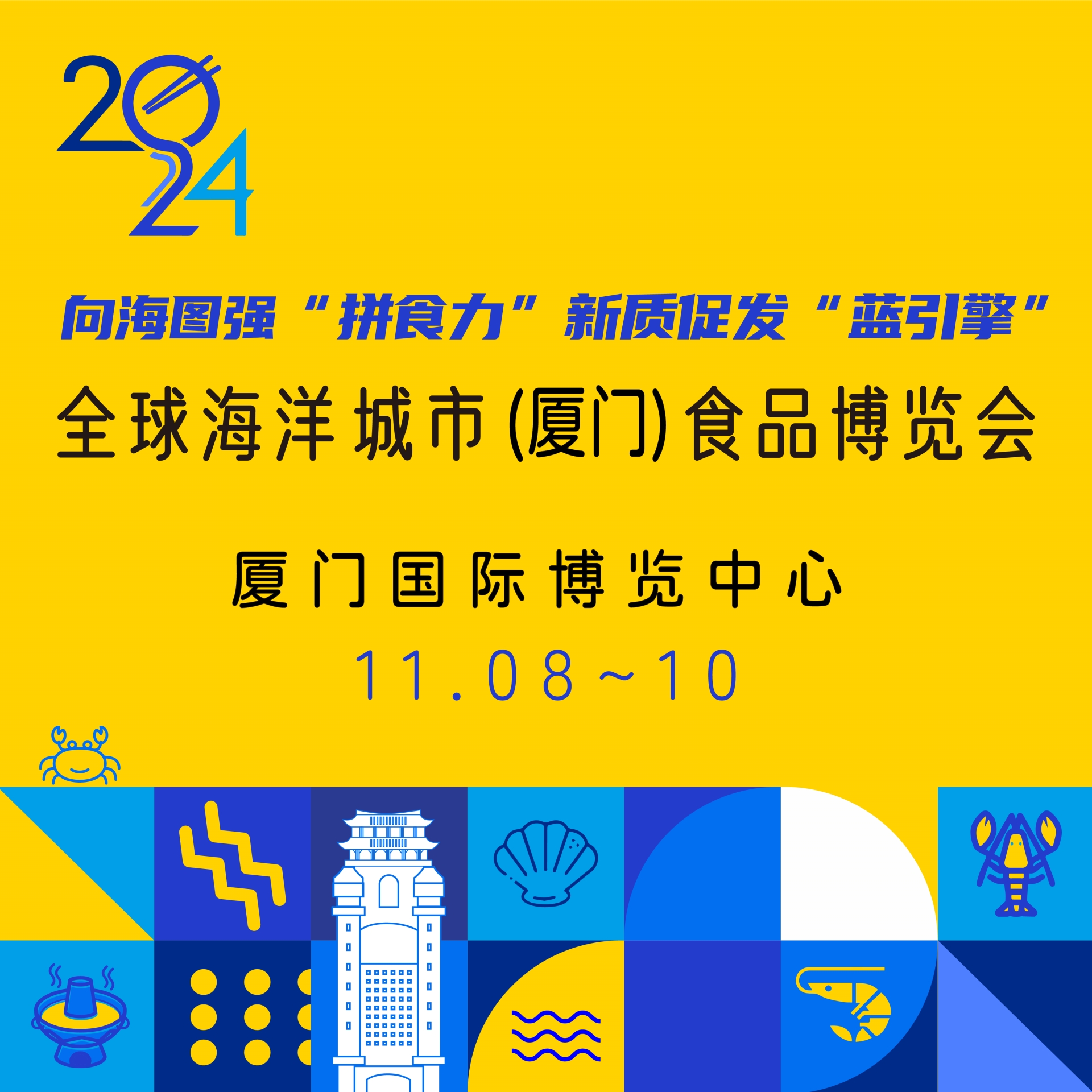 全球海洋城市(厦门)食品博览会以“向海图强‘拼食力’,新质促发‘蓝引擎’”为主题,旨在打造以海洋城市为核心的食品专业化展会,推动海洋食品全产业链上下游发展,为参展商提供优质的商贸合作机会与品牌传播效应。本届展会于2024年11月8-10日在厦门国际博览中心举办,展览面积达50000㎡,参展商超2000+,专业观众超50000+,同期活动10+,流量宣传超1000万+