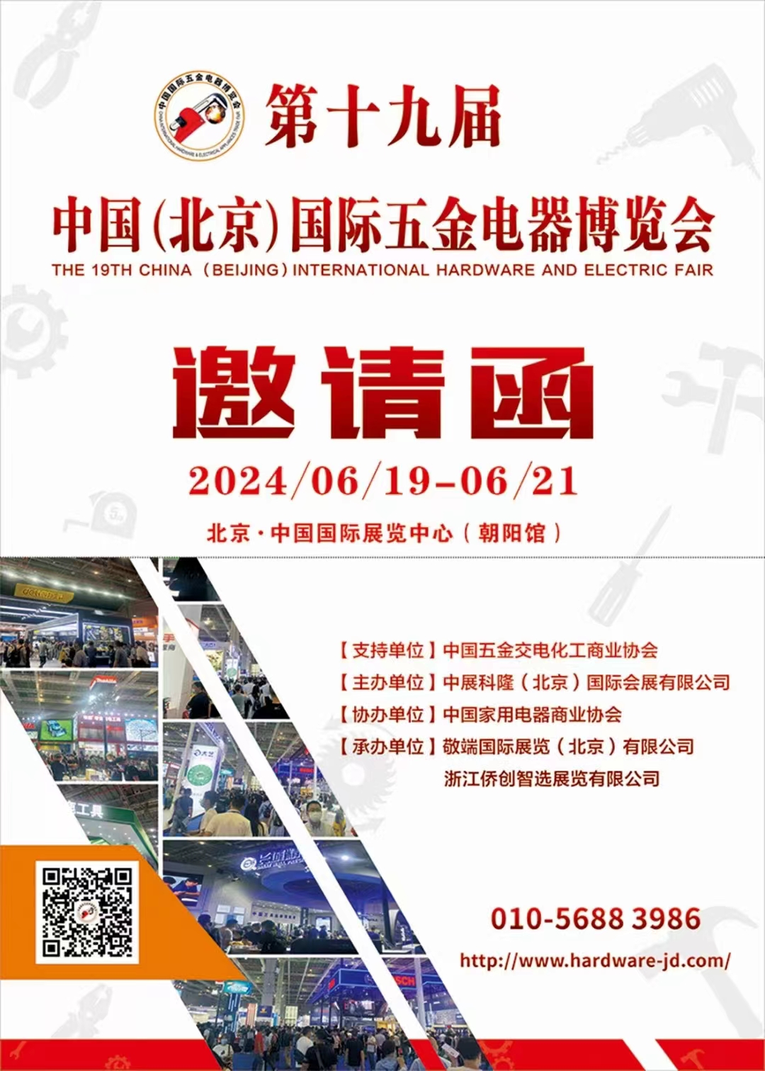 【展会背景】 北京--国 际经济的引擎、北方经济的核心 北京凭借独有的首都资源、国际影响力以及科研、人才优势,各大央企国企、科研机构、行业协会、世界 500 强企业等总部落户北京,为国内外优秀五金品牌加强交流合作、开拓中外市场提供了极大支撑。 【展会时间、地点】 布展时间:2024年6月17日-18日 展览时间:2024年6月19日-21日 地 点:北京·中国国际展览中心(朝阳馆)(北京市朝阳区北三环东路6号)