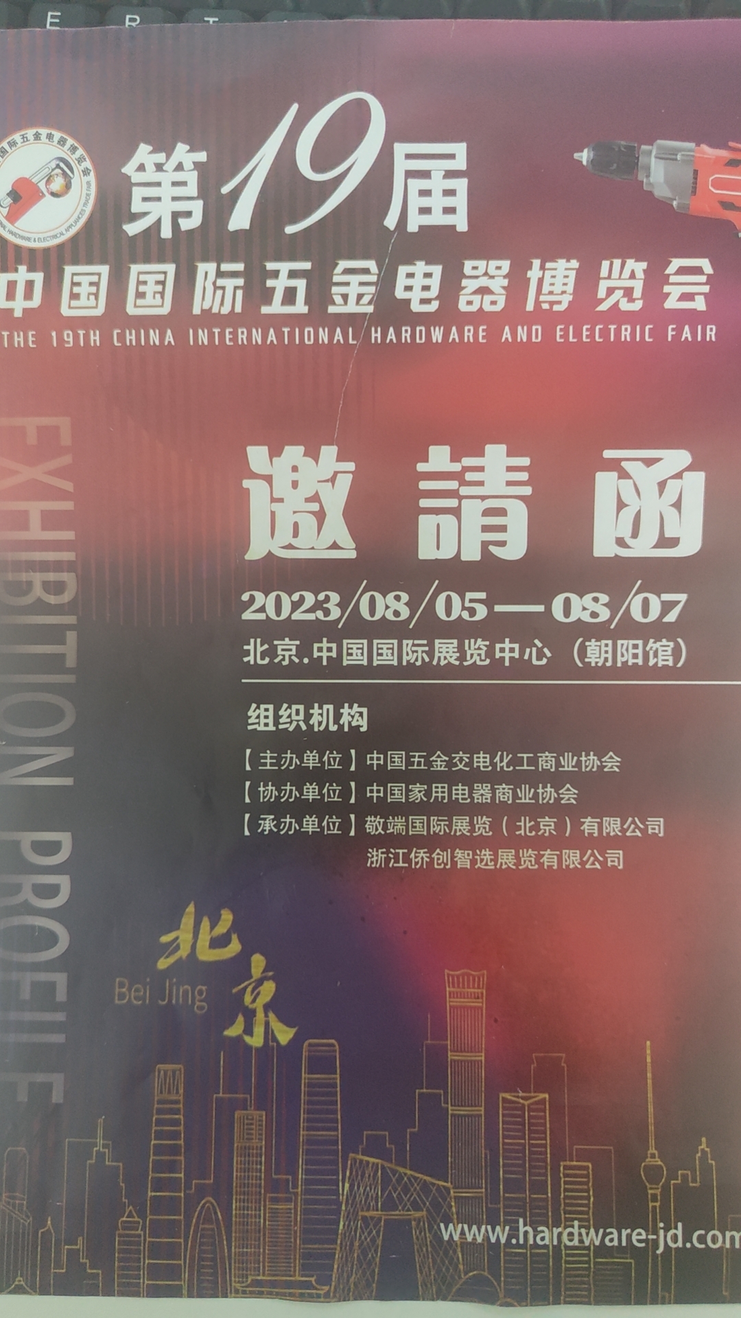 为全面展示中国五金电器行业发展趋势和前沿成果,突出新产品、 新技术、新装备对拉动经济和促进消费示范引领作用,扩大对优秀五 金电器企业宣传和推广,加强国际国内五金电器相关企业交流与合作, 推动我国五金电器行业高质量创新发展,充分发挥首都北京的区位优 势和辐射作用,为五金电器上下游企业搭建多功能、高品质交流贸易 平台,在充分征求行业建议和听取广大企业意见基础上,主办方中国 五金交电化工商业协会研究决定:“2023第十九届中国国际五金电器 博览会”定于2023年8月5日-7日在中国国际展览中心(北京朝阳 馆)举行,欢迎行业相关企业和会员单位踊跃报名参展参观。