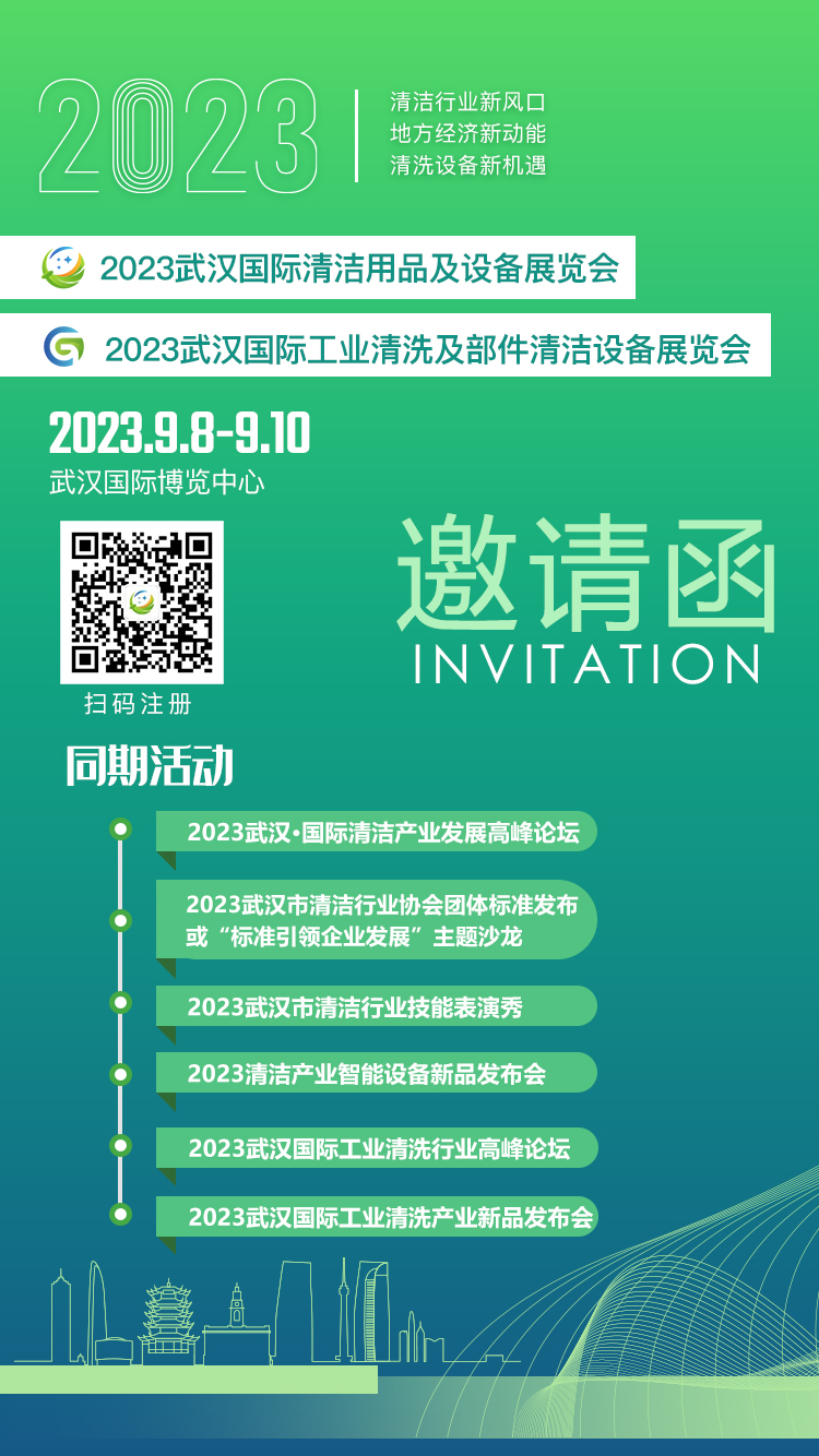 本次展会由湖北省商务厅、武汉市工商联指导,由全国众多清洗保洁行业机构合力主办,于2023年9月8日-10日在武汉国际博览中心(汉阳)隆重举行,预计展览规模2.5万平米,吸引国内外400余家企业参展参会、3万名专业观众到场参观、采购。旨在为国内酒店、医院学校、办公楼宇、景区等商业空间及小区住宅、市政环卫、工业工厂、公共设施提供一站式物业保洁、环境卫生、专项清洁解决方案。