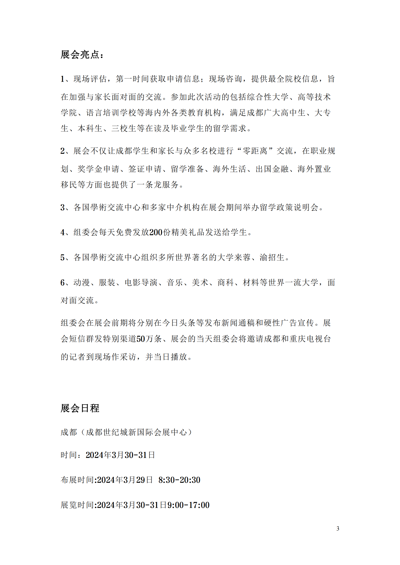 图文详情2024中国西部(成都-重庆)国际教育暨留学移民展将吸引来自世界二十多个国家和地区的上百所院校参加,现场咨询的学生和家长收获满满,组委会凭借多年的成功办会经验及各方面资源积累,立足西部,走国际化、品牌化路线,努力将教育展打造成为四川教育行业最具代表性的品牌展会,本届教育展在规模、效果、品牌影响力上将会有一个质的飞跃,让国际教育展真正为各海外院校、出国留学移民服务机构深度开发四川和重庆教育市场搭建招生宣传、国际间的教育合作和交流的桥梁。西部国际教育展不仅仅是服务家庭,服务学校、服务教育机构、更不单纯是教育本身的事,它将服务全社会成为经济发展的助推器,一张含金量较高的城市名片,让世界通过教育展这个窗口更加地了解四川和重庆,更好地让世界关注四川和重庆,营造良好的国际合作环境,吸引高层次的人才和合作伙伴,使四川和重庆迈上一个新台阶。
