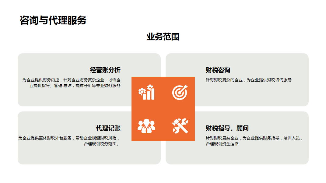 财税咨询 / 顾问 / 指导:针对性解决企业财税难题,提供全流程支持
